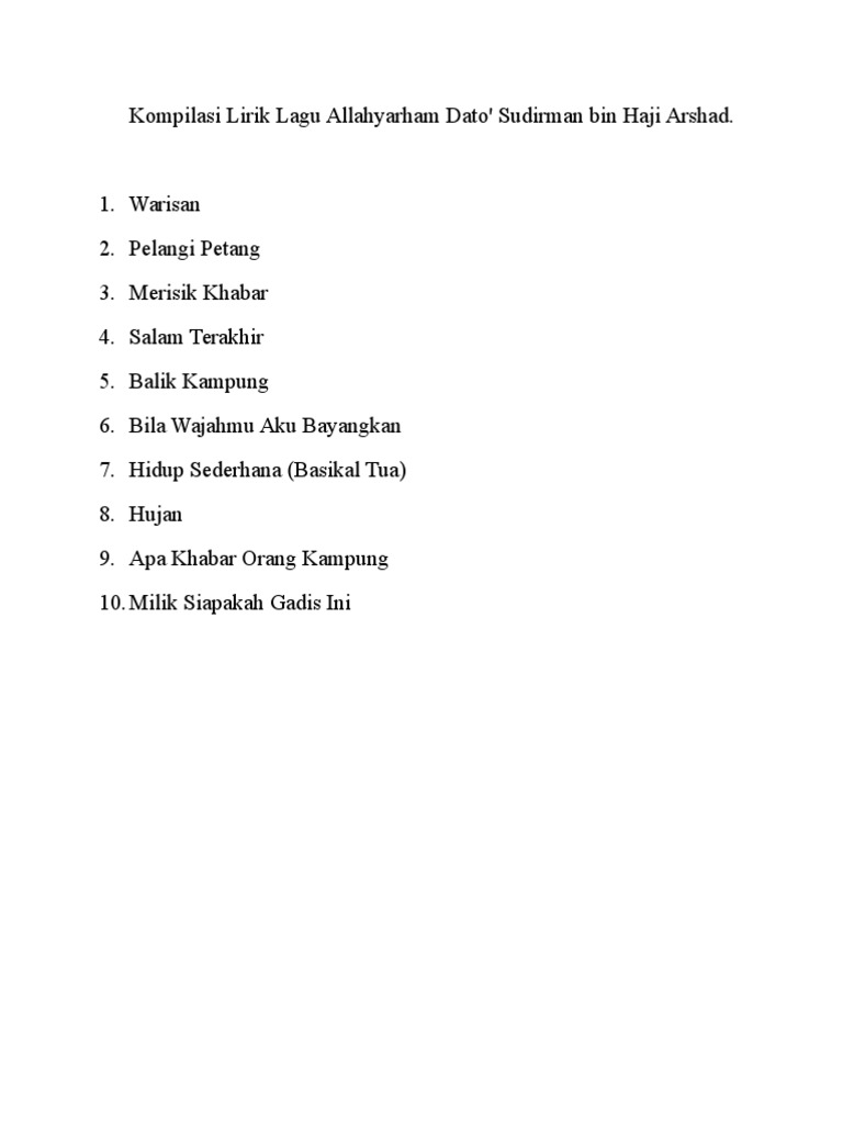 Datuk Sudirman Haji Arshad Lirik Lagu Merisik Khabar Milik Siapakah Gadis Ini Facebook